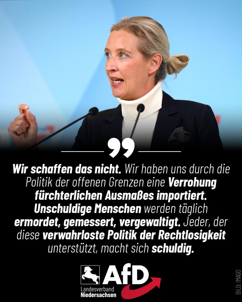 Alice Weidel zur Festnahme eines Irakers, der im Verdacht steht, eine 16-Jährige (✞) vor einen Güterzug gestoßen zu haben.