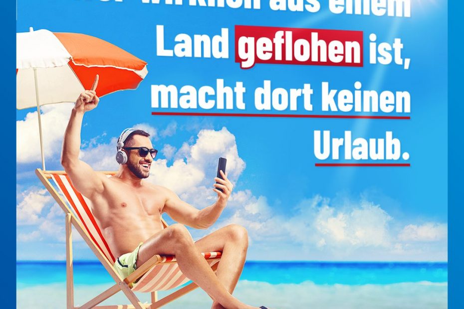 Wer Asyl in Deutsch­land bean­tragt, for­dert Schutz vor Ver­fol­gung. Es ist daher nicht nach­voll­zieh­bar, dass Asyl­be­wer­ber zurück in ihre Her­kunfts­län­der rei­sen, um dort Urlaub zu machen. Sol­che Rück­rei­sen machen den gesam­ten „Flucht­grund“ unglaub­wür­dig und offen­ba­ren damit mas­si­ven Sozi­al­miss­brauch. Hier wird die Gast­freund­schaft der Deut­schen auf… Wei­ter­le­sen »Wir wün­schen den „Schutz­su­chen­den“ einen schö­nen Urlaub!