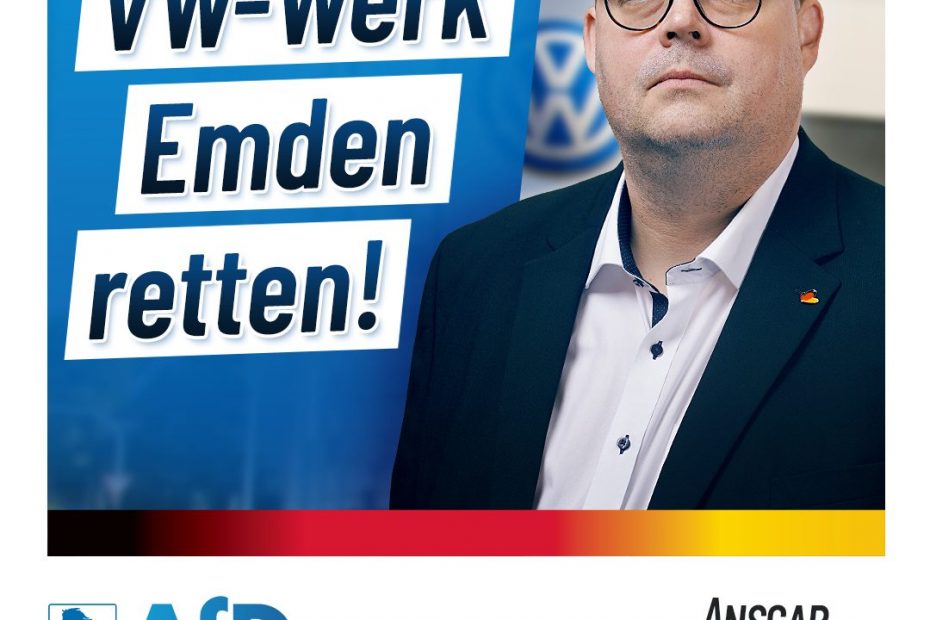 Nie­der­sach­sens AfD-Chef Ans­gar Schled­de hat Bund und Land auf­ge­for­dert, sich mit Nach­druck für die Zukunft des Volks­­­wa­­gen-Werks in Emden ein­zu­set­zen: „Der Betrieb, sei­ne Zulie­fe­rer und Dienst­leis­ter brau­chen eine ech­te Zukunfts­per­spek­ti­ve. Sonst dro­hen der Stadt und ihrem Umland ein mas­si­ver Abstieg. Das VW-Werk in Emden ver­dient… Wei­ter­le­sen »VW-Werk Emden ret­ten!