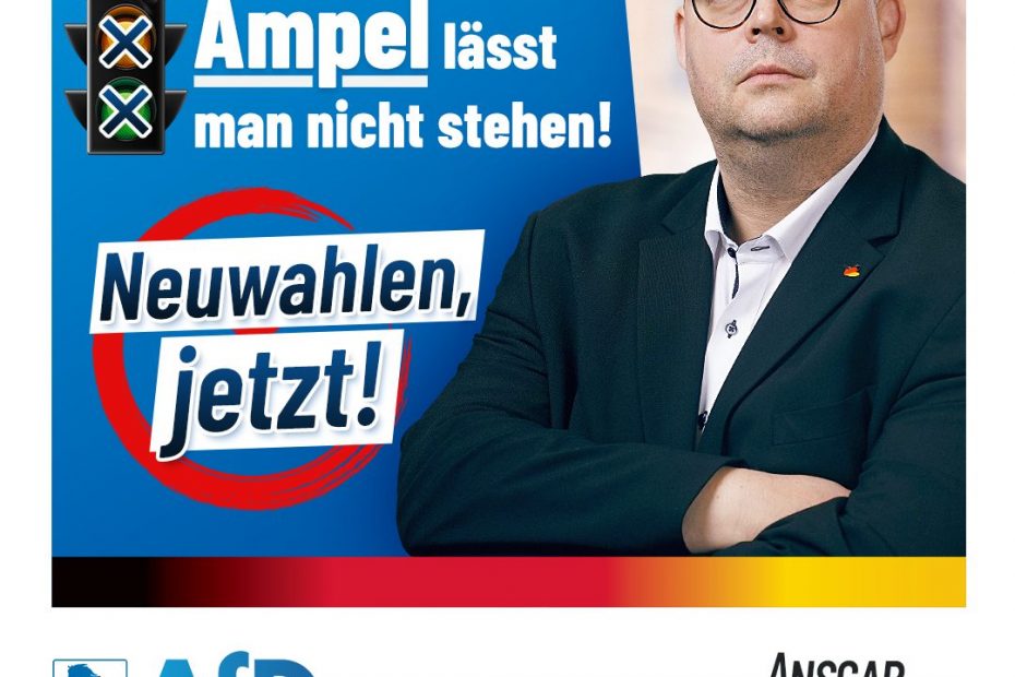 Gesprä­che geschei­tert. Lind­ner ent­las­sen. Ampel erlo­schen. Olaf Scholz wird im Janu­ar die Ver­trau­ens­fra­ge stel­len. Das Ergeb­nis steht jetzt schon fest: Neu­wah­len! „Sol­che Tage erlebt man wohl nur ein­mal im Leben“, freut sich Ans­gar Schled­de, Vor­sit­zen­der der AfD-Nie­­der­­sach­­sen. „Erst holen die Ame­ri­ka­ner sich mit Donald Trump… Wei­ter­le­sen »Ampel am Ende – Neu­wah­len, jetzt!