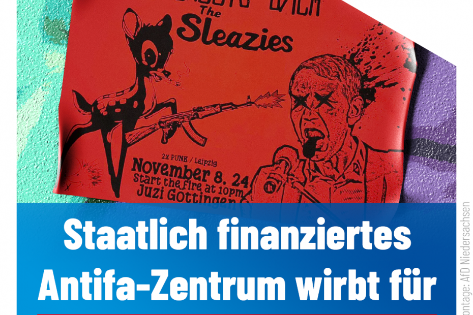 Die lin­ke Sze­ne in Göt­tin­gen ist seit lan­gem bekannt für ihr mili­tan­tes Geba­ren gegen Anders­den­ken­de. Mit einem Kon­­­zert-Pla­­kat, das die Hin­rich­tung des AfD-Poli­­ti­kers Björn Höcke zeigt, haben sich die Links­ra­di­ka­len aller­dings kei­nen Gefal­len getan. Die Empö­rung ist groß, das Kon­zert abge­sagt und die lin­ke Sze­ne… Wei­ter­le­sen »Auf Steu­er­zah­ler­kos­ten: Anti­fa-Mord­fan­ta­sien gegen Höcke!