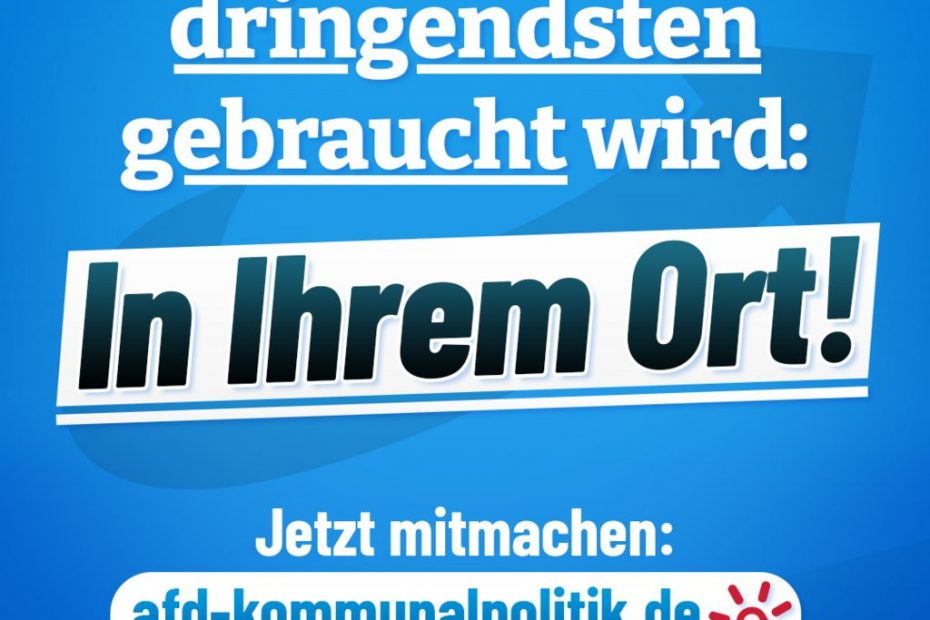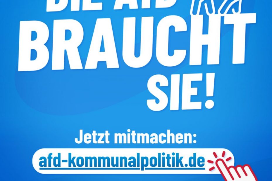 Du weißt tief in Dir drin, dass Deutschland Dich braucht und dass jeder vernünftige Bürger unseres Landes eine Verantwortung hat, den Niedergang zu stoppen, nicht wahr? Nichts wird besser, wenn wir das Handeln anderen überlassen. Nimm diese Botschaft gerne als persönliche Einladung: Wir brauchen Dich für Deutschland! Die AfD hat als bundesweit stärkste Kraft einen riesigen Bedarf an klugen Köpfen und zupackenden Händen. Eine Partei, die schon bald das Land regieren und zahllose Probleme lösen soll, braucht auch das „Personal“, um die Wahlerfolge in konkrete Verbesserungen für unsere Bürger zu verwandeln. Hier kommst Du ins Spiel! Unterstütze uns im Wahlkampf und in den Parlamenten, damit Niedersachsen endlich die Wende schafft! ???? Jetzt eintragen: www.afd-kommunalpolitik.de/kommunalwahl-niedersachsen