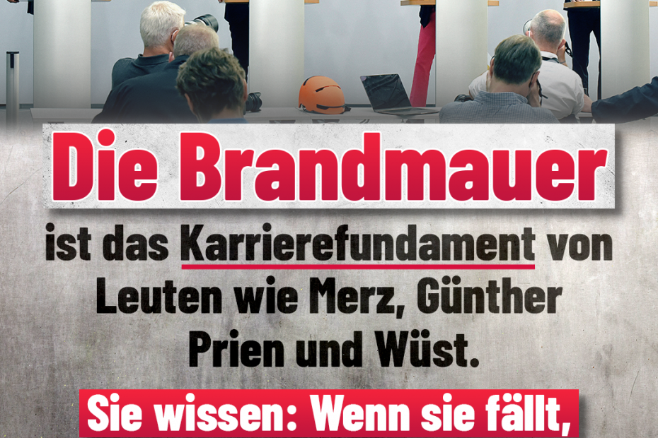Merz, Prien, Wüst und Co. haben sich hin­ter der Brand­mau­er ein­be­to­niert. Man stel­le sich die Stra­te­gie­be­spre­chun­gen in der CDU-Par­­tei­­zen­­tra­­le vor: „Die Wäh­ler stei­gen uns aufs Dach, weil sie die Bran­d­­mau­er-Rhe­­to­rik satt haben. Was machen wir denn jetzt?“ Die ein­zig ver­nünf­ti­ge Ant­wort – der Ein­riss der… Wei­ter­le­sen »Es gibt für sie kein Zurück mehr!