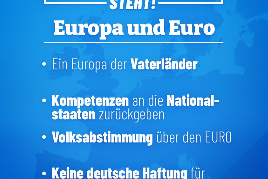 Die AfD setzt sich für eine Euro­pa­po­li­tik ein, die nicht auf die Zen­tra­li­sie­rung der Macht in Brüs­sel und die Abschaf­fung natio­na­ler Sou­ve­rä­ni­tät hin­aus­läuft. Wir wol­len ein Euro­pa der Vater­län­der, in dem die euro­päi­sche Idee und die Frei­heit auf unse­rem Kon­ti­nent über­le­ben kön­nen! Statt wei­te­rer Kom­pe­tenz­ver­schie­bun­gen… Wei­ter­le­sen »Wer Euro­pa ret­ten will, muss die­se EU über­win­den!