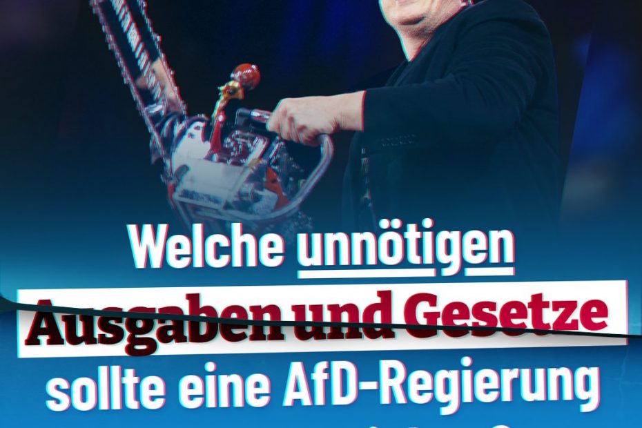 An Elon Musks Minis­te­ri­um für Regie­rungs­ef­fi­zi­enz (DOGE) kann man sich ein Bei­spiel neh­men. Er deckt auf, wo der Staat Mil­li­ar­den ver­schwen­det für lin­ke Pro­pa­gan­da, zwie­lich­ti­ge „Demo­kra­tie­för­de­rung“, Zen­sur und Gen­­der-Wahn — und setzt dann knall­hart den Rot­stift an. Das ist auch in Deutsch­land nötig! Eine AfD-Regie­rung… Wei­ter­le­sen »Auf­räu­men, aus­mis­ten, abschaf­fen: Das brau­chen wir in Deutsch­land!
