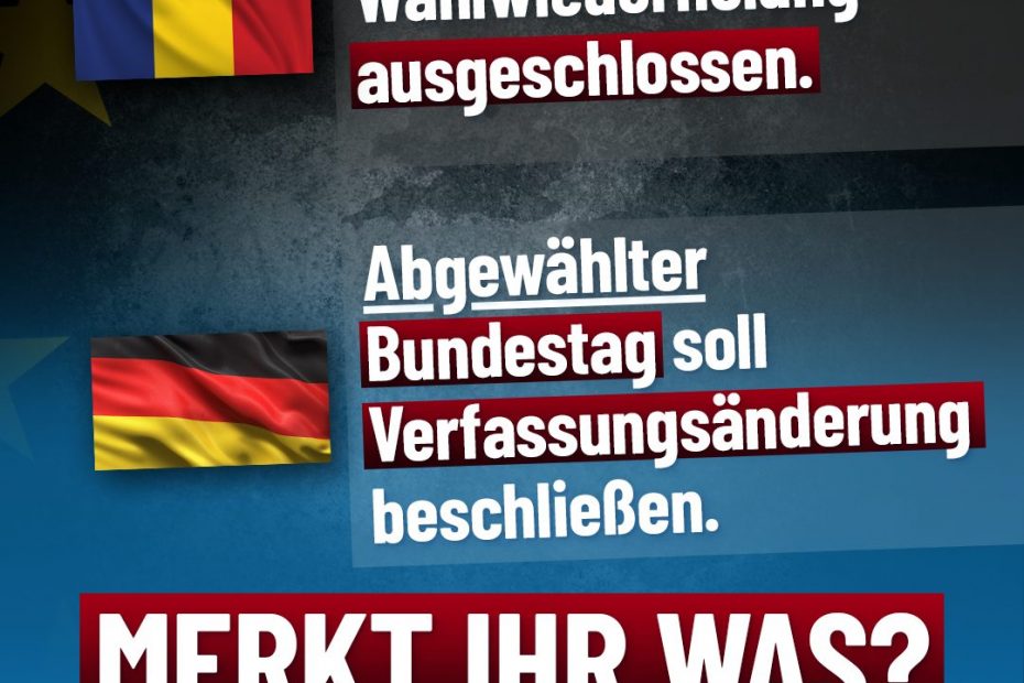 Die Vor­gän­ge in Rumä­ni­en und Deutsch­land zeu­gen von einer unglaub­li­chen Demo­kra­tie­ver­ach­tung. In Ber­lin soll ein astro­no­mi­sches Schul­­den- und Auf­rüs­tungs­pa­ket durch­ge­boxt wer­den. Der desi­gnier­te Bun­des­kanz­ler Fried­rich Merz hat­te vor der Wahl das genaue Gegen­teil ver­spro­chen. Sei­ne Wäh­ler­täu­schung wird die Deut­schen min­des­tens fast 1.000 Mil­li­ar­den Euro kos­ten!… Wei­ter­le­sen »Und das nen­nen sie dann Demo­kra­tie!