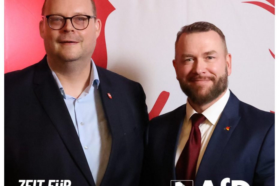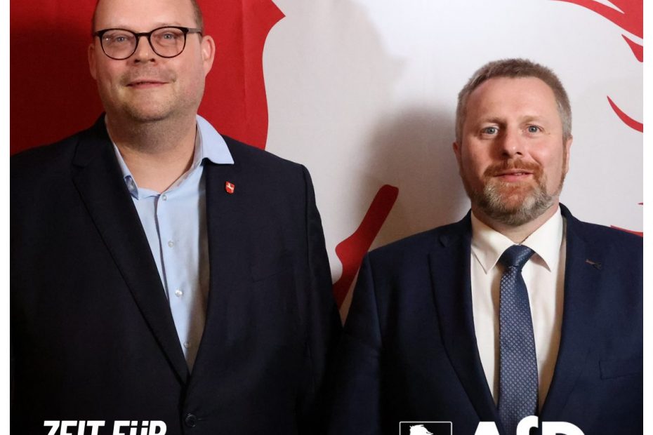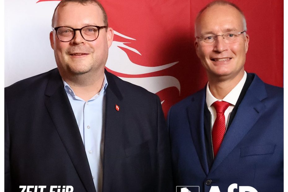 Landesvorsitzender Ansgar Schledde gratuliert unserem Spitzenkandidaten Dirk Brandes zur Wahl auf Platz 1 unserer Liste zur Bundestagswahl.