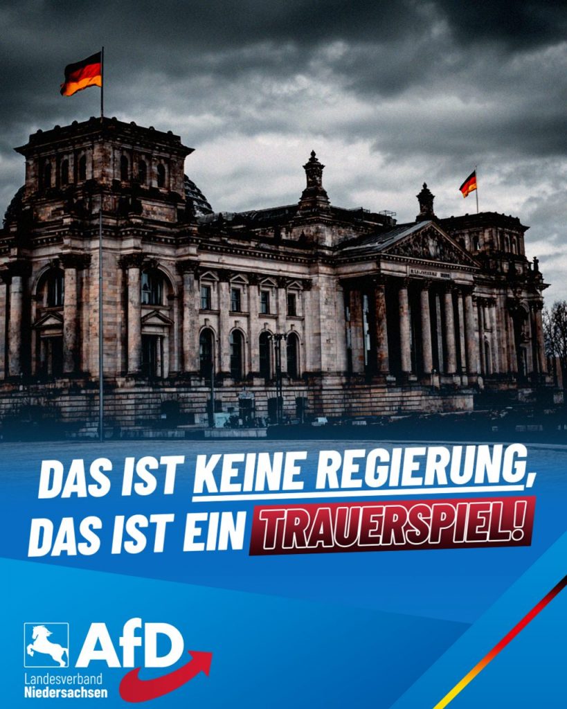 Eine Regierung, die Milliarden für Ausländer, Wohlstandstouristen und Bedürftige in aller Welt ausgibt, am laufenden Band Grundrechte schleift, die Meinungsfreiheit zum Privileg von Linken erklärt und eine intakte Energieversorgung zerstört, ist keine Regierung, sondern ein einziges Trauerspiel.