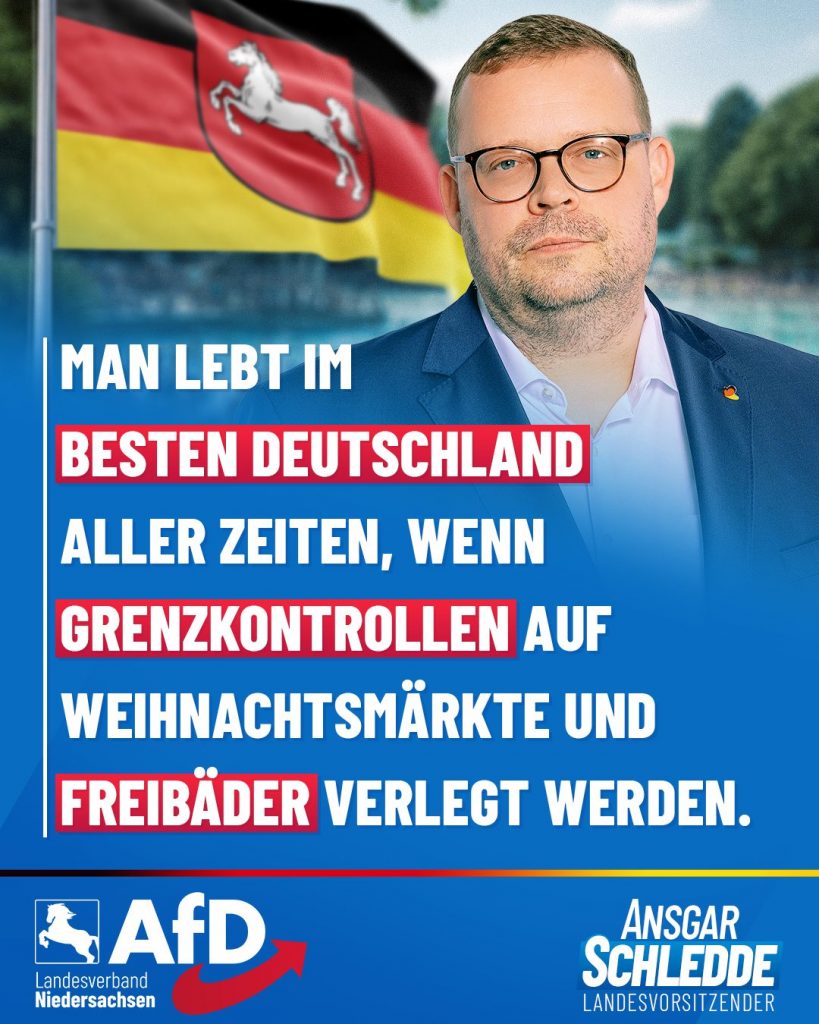 „Als Bürger dieses Landes ist es mir unbegreiflich, wie die Regierung den Verfall der inneren Sicherheit zulassen kann, ohne die Ursachen abzustellen“, erklärt Ansgar Schledde, Vorsitzender der AfD Niedersachsen.