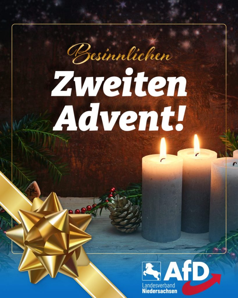 Unsere AfD Niedersachsen wünscht allen Freunden und Kritikern einen schönen zweiten Advent!
